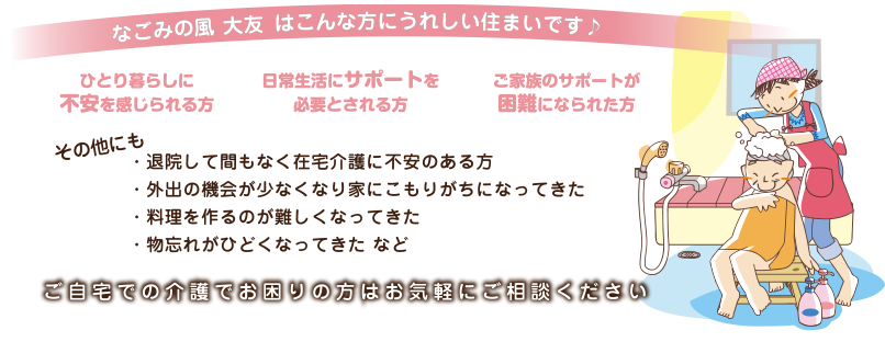 岡崎のサービス付き高齢者向け住宅をお探しなら、ハートケアメゾンなごみの風「大友」/ナンブ