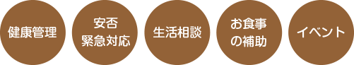 スタッフが24時間常駐して入居者様の状況確認・生活相談・安否確認をはじめ、