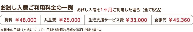 家賃・共益費・生活支援サービス費・食事代を
